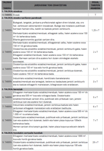 Jarraian bi zati hauen establezimendu bakoitzarendako tasen laburpen-taulen azalpen motz bat ematen da.