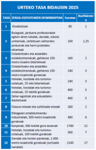 2025ean Bidausiko zabor-tasak eguneratu ditugu, dexente zaharkituak baitzeuden.