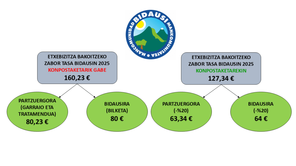 Partzuergoaren zatian %5eko deskontua lortu du Bidausiko kontratu orok, edukiontzi berdean bildutakoaren batazbestekoa Nafarrokoarena baino hobea delako (urtetik urtera alda daiteken deskontua da hau, emaitzen araberakoa, dagoeneko urte multzo batez lortu dena). Bestalde, %20ko deskontua eskaintzen zaie etxe edo auzo konpostaketa egiten duten erabiltzaileei.